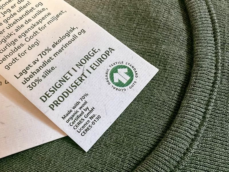 Ullen vår er GOTS-sertifisert, som er en av de strengeste sertifiseringene for tekstiler. Mens de fleste andre miljøsertifiseringer tar hensyn til kun deler av produksjonen, for eksempel at råstoffet er økologisk eller at sluttproduktet er giftfritt, sikrer GOTS hele produksjonen. Godt dyrehold, trygge arbeidsforhold, minst mulig belastning på naturen og et helt trygt sluttprodukt. Det holder ikke å utelate stoffer vi idag vet er er skadelige. Kun stoffer man vet er trygge tillates i produksjonen.