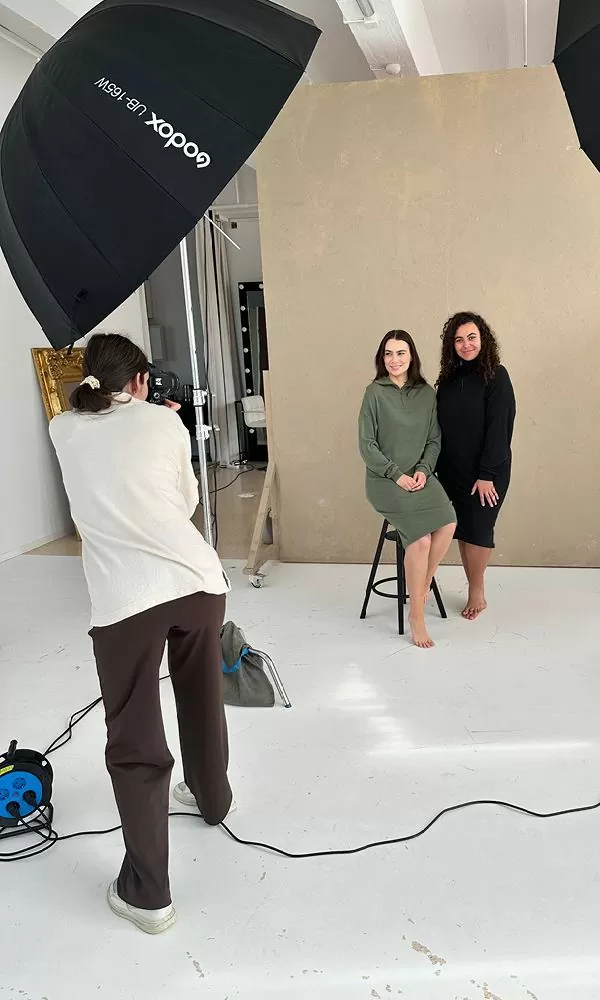 Før varene kommer inn på lager, benytter vi ventetiden med å fotografere. Vi bruker vareprøver vi har godkjent, og planlegger fotoshoot for studio og lookbook. I Nøste tar vi alle bilder selv, og ofte stiller ansatte eller bekjente av ansatte som modeller. Alle foto må etterhvert kuttes og optimaliseres for nettbutikken.