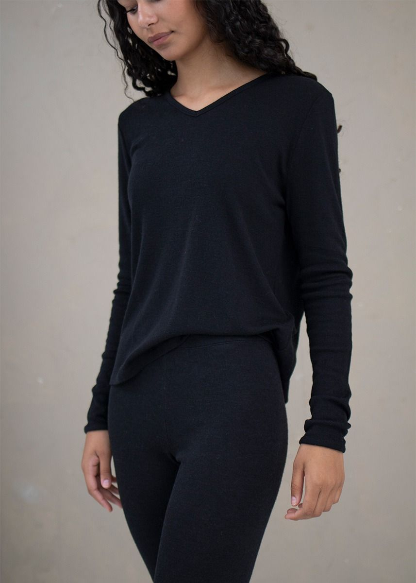 Løs genser med v-hals i ull med silke