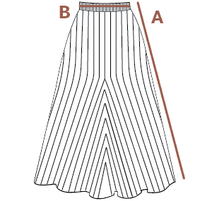 Et ankellangt ullskjørt med utsvinger silhuett. Skjørtet har elastikk i midjen og dekorative vertikale striper i strikket struktur. Skjørtet er strikket i mellomtykk og myk merinoull.