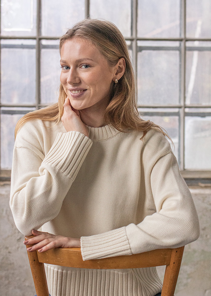Vi designer plaggene våre selv og har et tett samarbeid med våre produsenter i Europa. Det er svært viktig for oss at klærne vi selger er produsert under gode arbeidsforhold, og at ullen kommer fra godt dyrehold. Ullen vår er ubehandlet, altså fri for all etterbehandling som påvirker fiberstrukturen, og kun farget med GOTS-sertifiserte farger. Vi blander heller ikke inn syntetiske fibre i klærne våre. Derfor inneholder de ingen stoffer som kan være skadelige for kroppen vår eller miljøet.