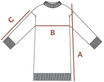 Tykk strikket ullkjole/lang genser. Genseren er en lang og vid modell. Lave skuldre og vidde i ermene. Høy ribbekant nederst på bol og ermer.