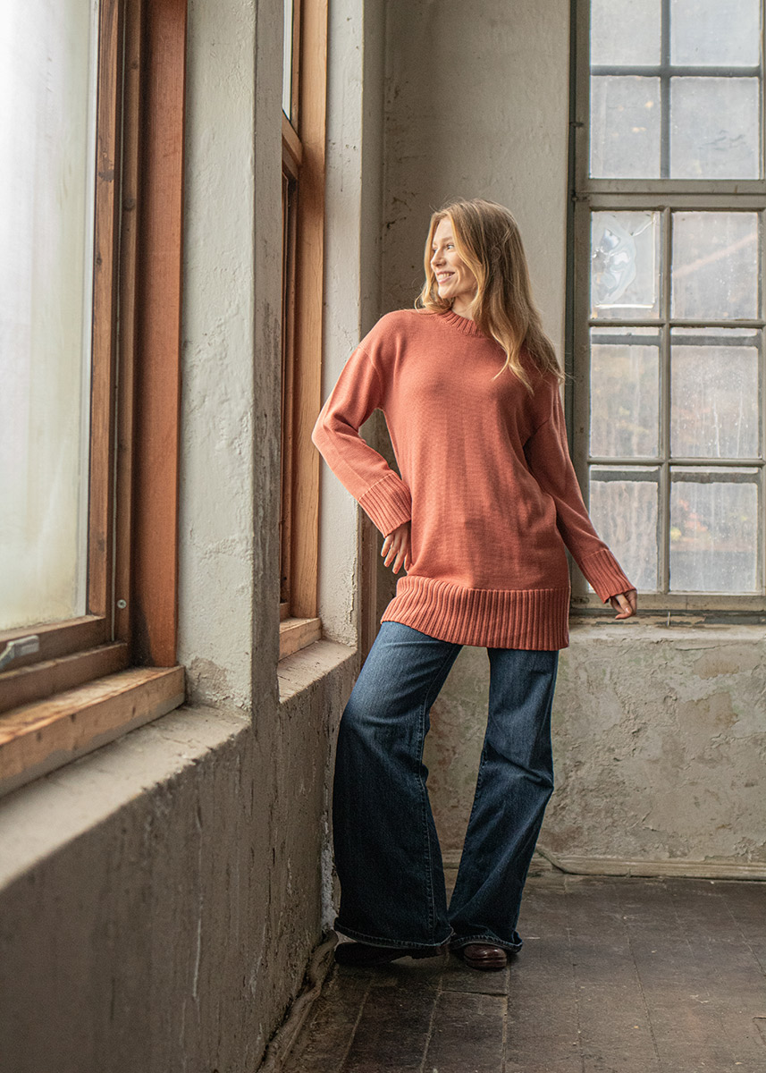 Vi designer plaggene våre selv og har et tett samarbeid med våre produsenter i Europa. Det er svært viktig for oss at klærne vi selger er produsert under gode arbeidsforhold, og at ullen kommer fra godt dyrehold. Ullen vår er ubehandlet, altså fri for all etterbehandling som påvirker fiberstrukturen, og kun farget med GOTS-sertifiserte farger. Vi blander heller ikke inn syntetiske fibre i klærne våre. Derfor inneholder de ingen stoffer som kan være skadelige for kroppen vår eller miljøet.