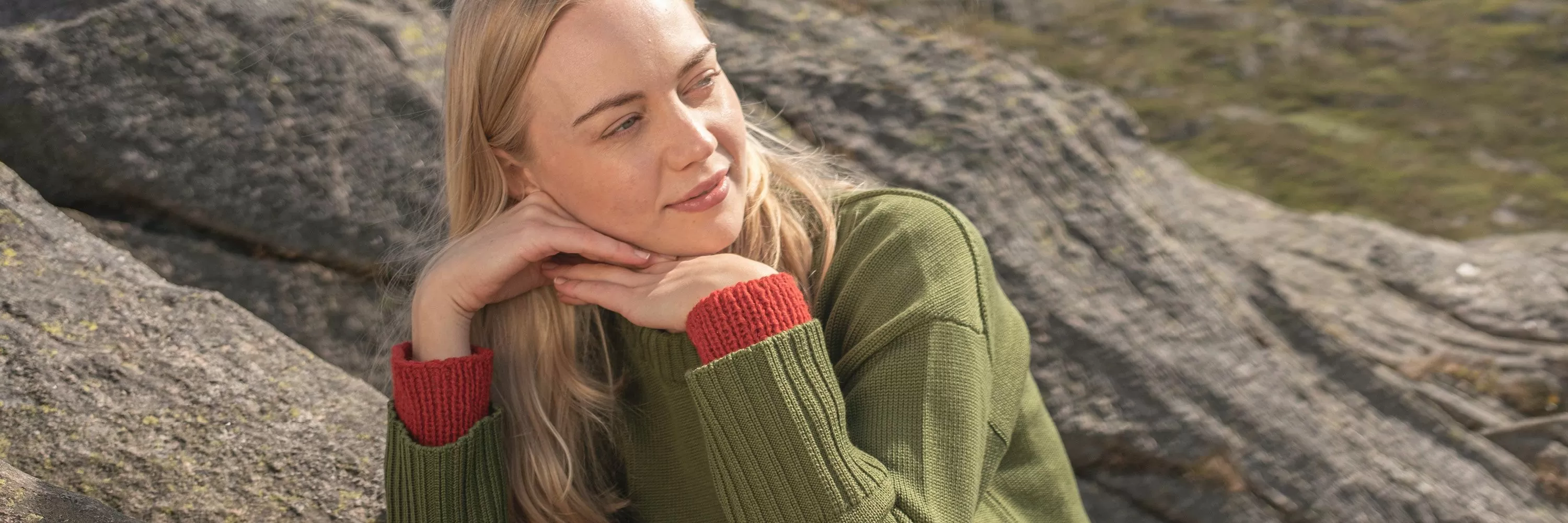 Vi blander ikke ullen vår med polyester eller andre syntetiske fibre. For deg betyr 100% naturfiber en helt egen behagelig følelse. Rene naturmaterialer ‘eldes med ynde’ som danskene sier, bare tenk på gamle vakre tremøbler. Man får lyst til å ta vare på plagg som er laget av gode råvarer, og som man vet er produsert med omtanke for mennesker, dyr og miljø.