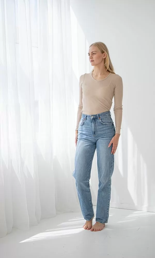 Våre basisplagg er i 100% naturmaterialer. I motsetning til syntetiske tekstiler, hjelper ull å regulere temperaturen samtidig som den puster og transporterer fukt og svette bort fra huden. Ubehandlet ull er også naturlig selvrensende og lukt- og bakteriehemmende. Plaggene trenger derfor sjeldnere vask.